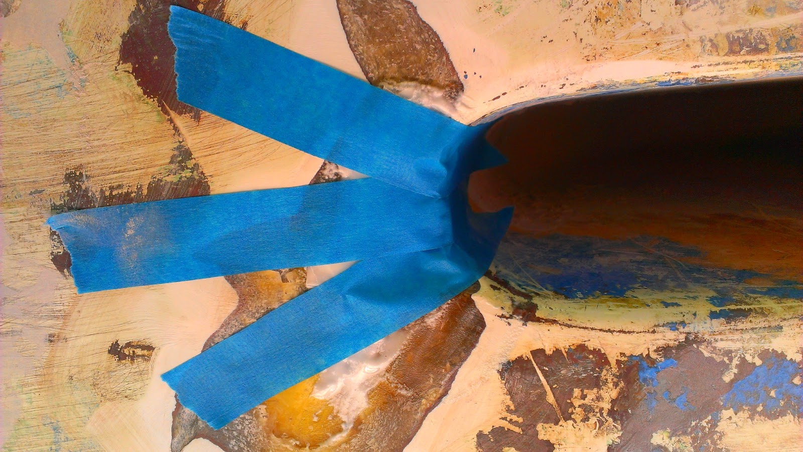 Feeling that the filler needs to be in contact with air (I'm not sure if this is true, but it seems logical and my experience with these materials has led me to believe that it will cure faster exposed to the environment) I removed this tape and wax paper about 30 minutes later. When doing this, I keep an eye on the container that the epoxy was mixed in to get an idea of how the cure is going. On this section I learned that wax paper sticks to epoxy much more than the painters tape does and pulled a bit when removing it leaving a rough surface which was advantageous for me. Notice the right side of the patch.